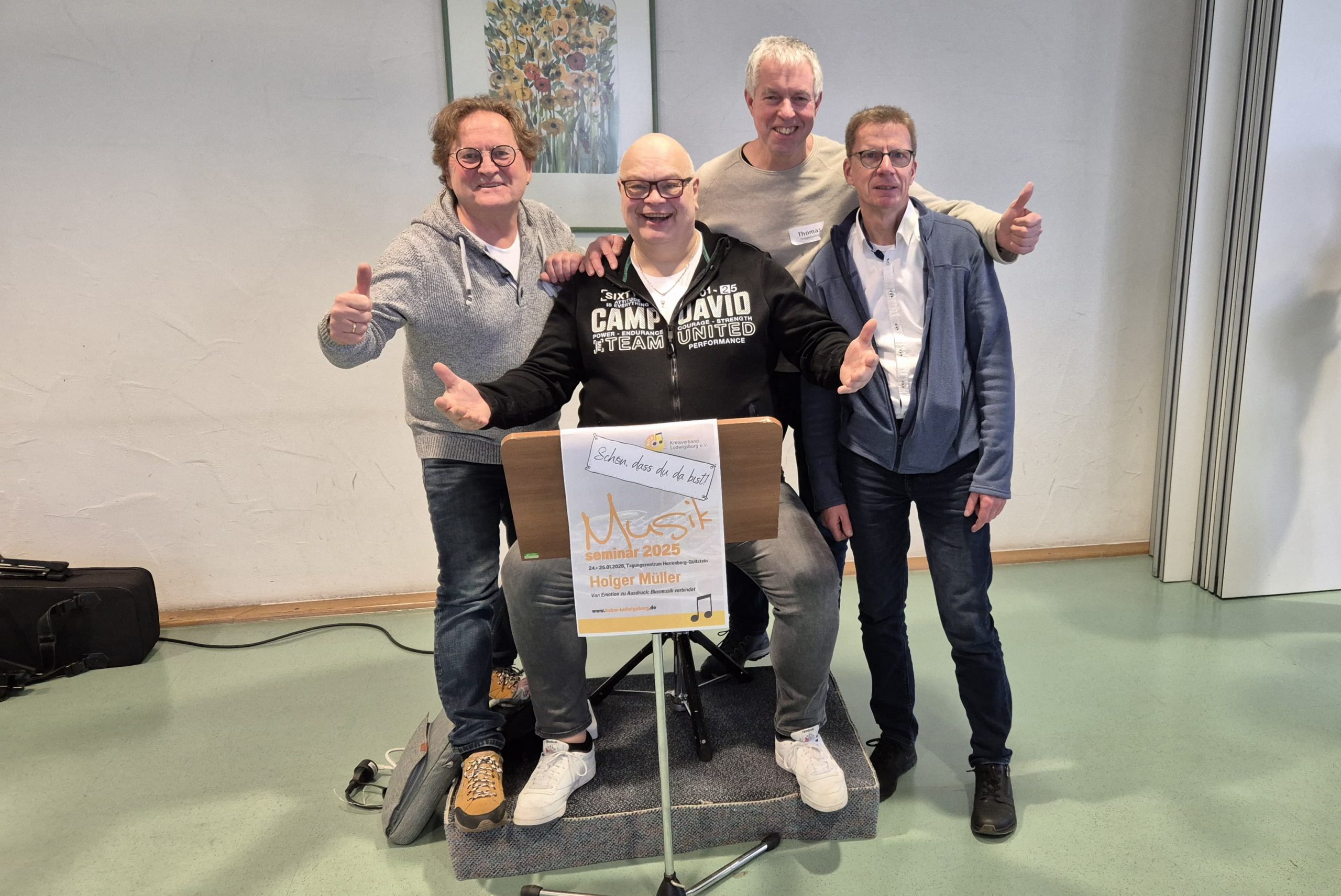 Am 24. und 25.01.2026 nahmen drei Musiker des Musikvereins Poppenweiler e. V. am Musikseminar der Blasmusik-Kreisverbände Ludwigsburg und Heilbronn im KVJS-Tagungszentrum Herrenberg-Gültstein teil, das in diesem Jahr unter der Leitung von Holger Müller stattfand.